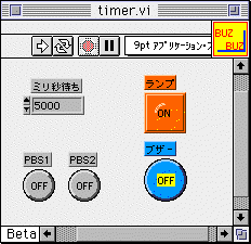 図8のタイマを組み入れたラダーチャートをLabVIEWで作成することにします。